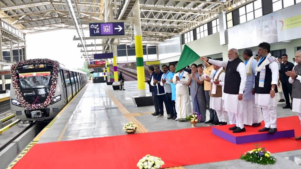 Chief Minister Siddaramaiah, Deputy Chief Minister D.K. Shivakumar, and officials from Bengaluru Metro Rail Corporation Limited (BMRCL) briefed PM Modi about the project at the premises. Later, the Prime Minister flagged off the Metro train at the station.
