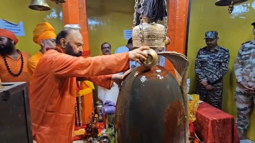 On the sacred occasion of Haryali Amavasya, the Chhari Mubarak Puja – an important ritual associated with the Amarnath Yatra – was conducted at the ancient Shankaracharya Temple in Srinagar. The Chhari Mubarak comprises two sacred silver maces, revered as physical embodiments of the divine couple – symbolising the presence of Lord Shiva and Goddess Parvati.