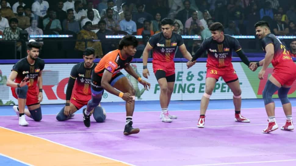 U Mumba were on a roll against the Bengaluru Bulls as they showed their dominance to defeat the Bulls 48-28 in a Pro Kabaddi League (PKL) 2025 match at the Vishwanadh Sports Club in Vizag on Friday. It was an all-round performance led by their skipper Sunil Kumar, while Rinku scored a High Five and the mighty Ajit Chouhan registered a Super 10, including a six-point raid.