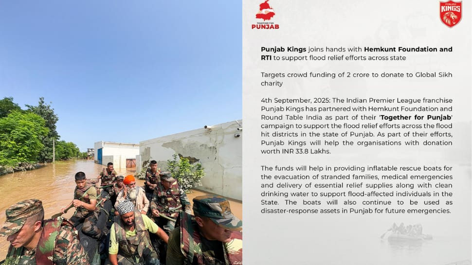 The Punjab Kings (PBKS) franchise has announced a partnership with Hemkunt Foundation and Round Table India (RTI) as part of their ‘Together for Punjab’ campaign to support flood relief efforts across the severely affected districts of Punjab. The IPL team will contribute Rs 33.8 lakh to assist in providing essential relief, including inflatable rescue boats for evacuating stranded families, medical aid, clean drinking water, and delivery of supplies. These boats will also serve as long-term disaster-response assets for future emergencies.